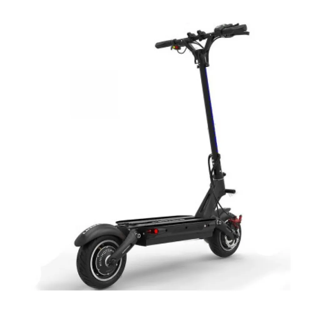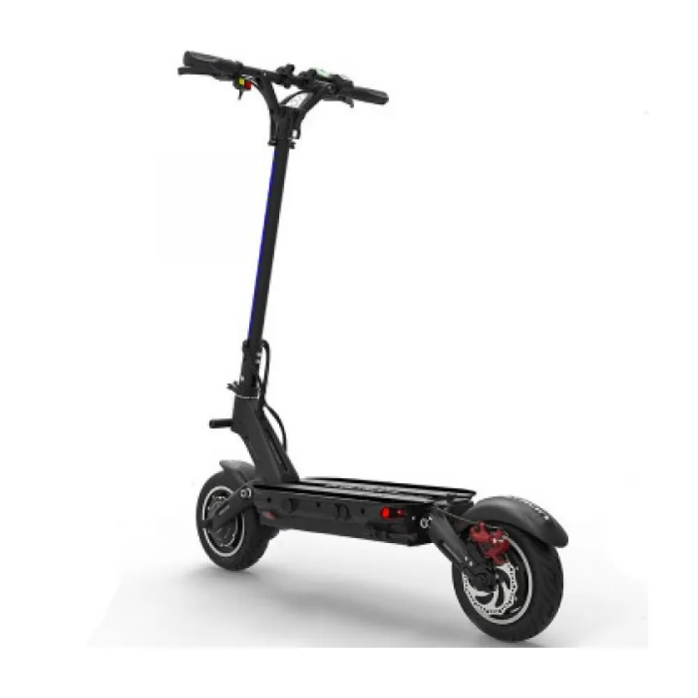 Оснащение самоката двумя мощными моторами по 800 Вт, позволяет ему быть быстрым и манёвренным, набирая до 60-65 км/ч. Для экономии заряда при спокойной езде можно отключить один мотор. В городском движении вы будите чувствовать себя уверенно, благодаря тормозу расположенному на пережнем и заднем колесах.