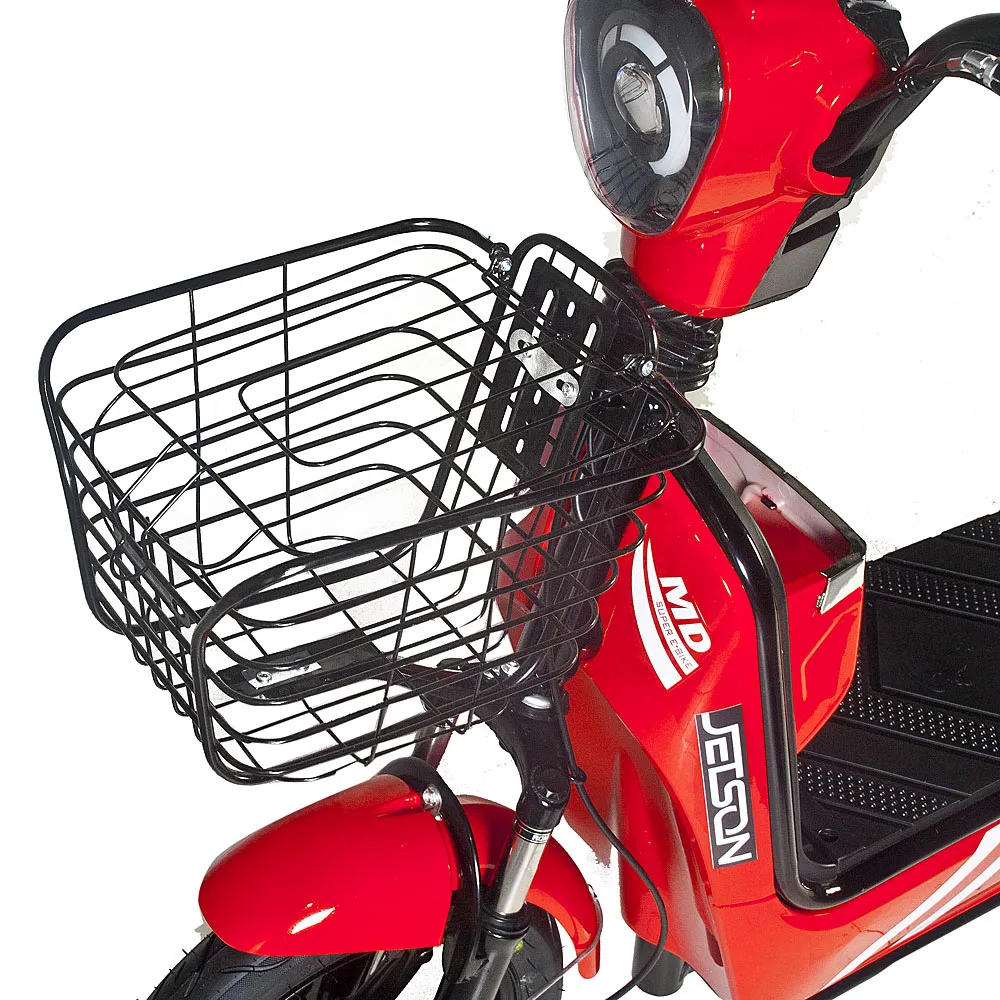 Аккумулятор быстросъёмный и имеет защиты от перезарядки, что делает его зарядку значительно проще. Заряжается он ни много, ни мало – 4 часа, что на самом деле довольно быстро для батарею такой ёмкости.  14-дюймовые колёса и регулируемая подвеска придадут больший комфорт при движении по любым поверхностям. Практичные барабанные тормоза электроскутера Jetson RS-12 делают его остановку максимально плавной. В тёмное время суток перемещение на скутере безопасно благодаря мощной LED-лампе спереди и габаритному огню сзади. В комплекте к электроскутеру идут корзинка для удобной перевозки малогабаритных вещей и сидение с прямой спинкой для комфортной посадки второго пассажира. Также на скутер с завода установлена сигнализация.