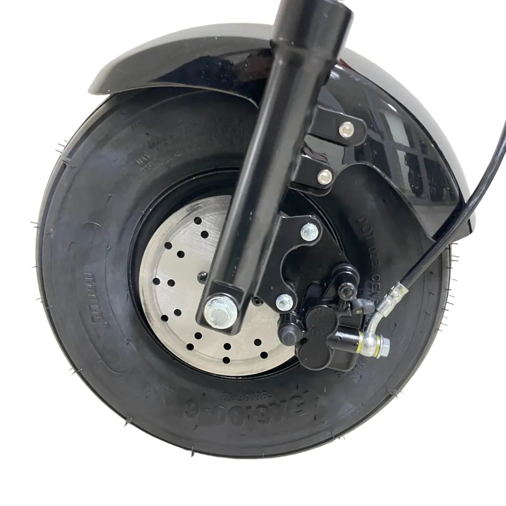 Электроскутер Kugoo Kirin С2 Pro также оборудован передним гидравлическим дисковым тормозом, который обеспечивает надежное и безопасное торможение. Вы сможете контролировать скорость и остановку с легкостью, что повышает уровень безопасности во время поездки.