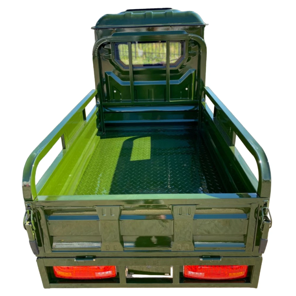 Электротрицикл грузовой GreenCamel Тендер D1500 с кабиной и понижающей передачей в стильном темно-зеленом цвете - идеальное решение для эффективной перевозки грузов. С его помощью вы сможете легко и удобно доставлять грузы на дальние расстояния.