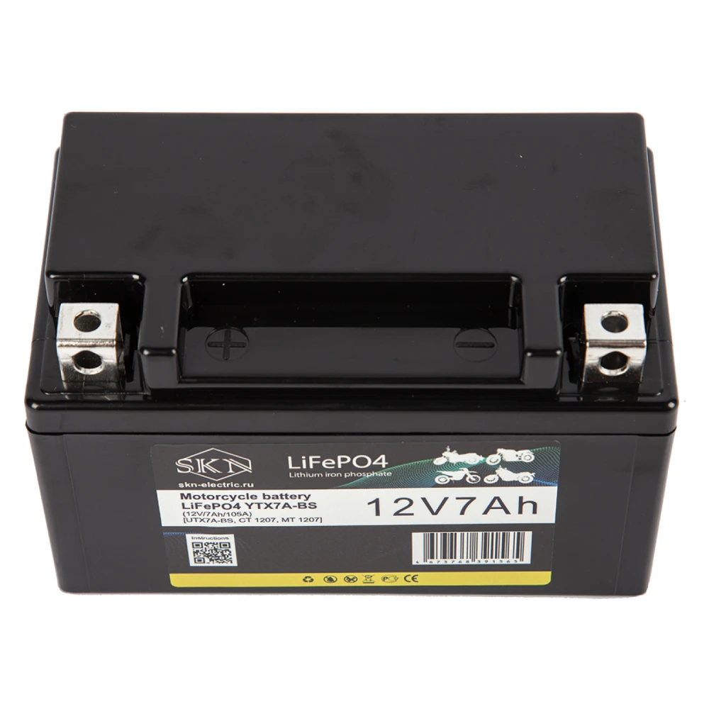 Аккумулятор для мототехники SKN LiFePO4 YTX7A-BS (12V/7Ah/105A) [UTX7A-BS, CT 1207, MT 1207]