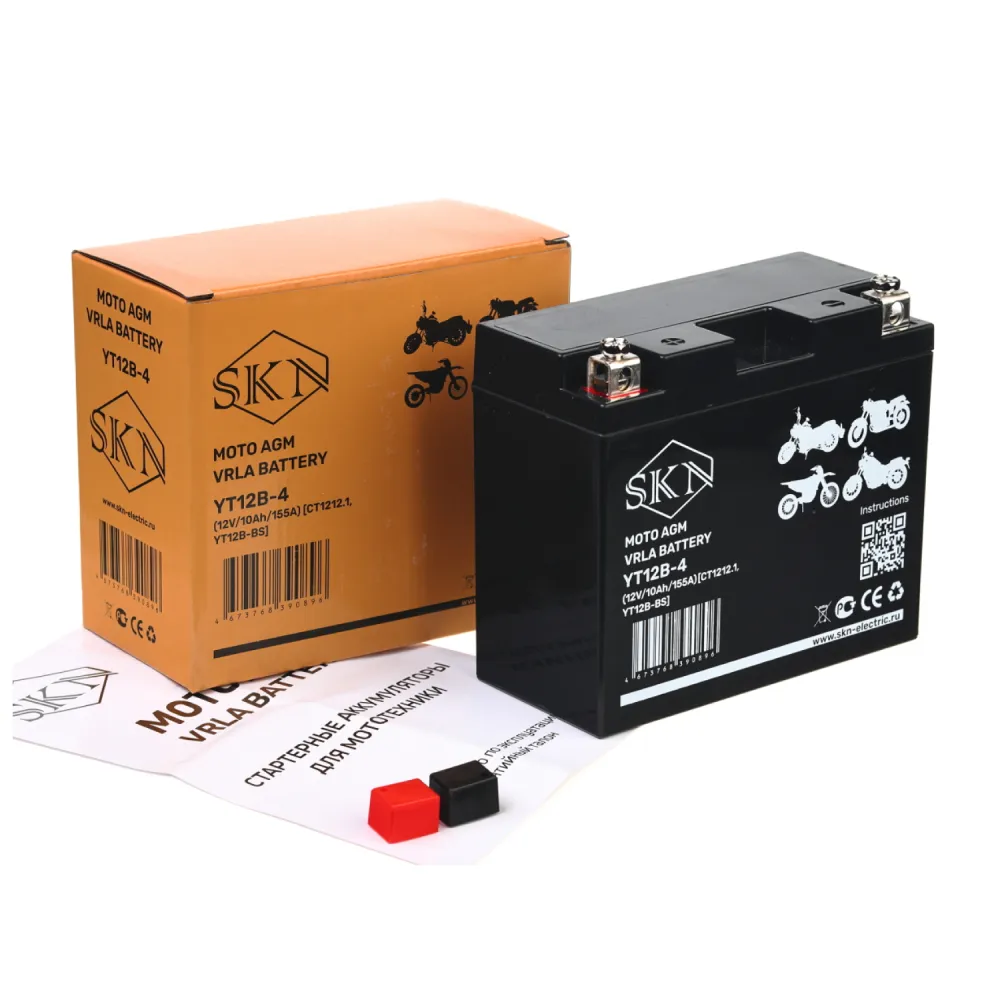Аккумулятор стартерный для мототехники SKN YT12B-4 (12V/10Ah/155A) [CT 1212.1, YT12B-BS]